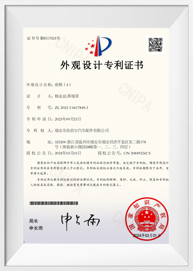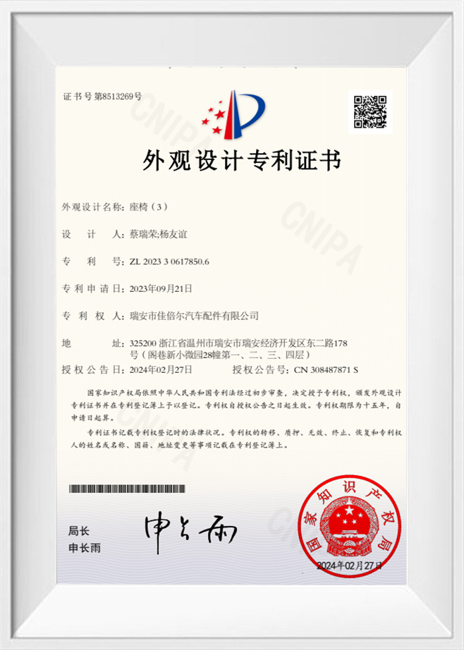 Certificado de patente de diseño